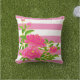 パテ飾オの屋外の家具にカラフルピンクの枕を付け。この四角い装飾用クッションはピンクと白ストライプのの背景にピンクの牡丹の花と緑の花を重ね葉ている。緑、白、またはピンクの色に合わせてコーディネートされる明るい牡丹の花のデザイン。枕の裏側はピンク無地の色。このピローもし屋内を使用し、別の生地を選択する方が好ましい。
