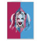 自殺隊 – ハーレークイン笑い。正面を赤と青で表す。彼女の額には書「見ている」と書いてある。