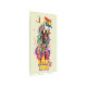 レトロスタイルのハーレークインのイラストレーションフラワー爆発、波打つ虹、カラフルの鳥とフラグを保持!