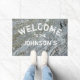 このドアマットに家族スタイリッシュ名を追加する。オリジナルの写真が自然の川の岩の崖から。グレーかわいらしで、このマットは完全にカスタマイズ可能!自分で編集して配置、色、フォントを変更する