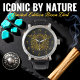 詳細なビソンの頭のイラストは、複雑な花や自然の要素で飾られている。このアートワークは、ビソンがその生息地とつながっていることを反映する花や緑などの要素を特徴としている。