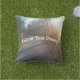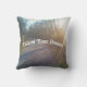 上から日射しによって森の中を曲がりくねった舗装樹の裏道の写真を持つ屋外布製の化粧輝く枕。カスタマイズ後を追テンプレートとの夢文字。