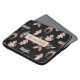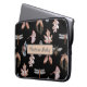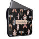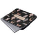 このラップトップスリーブは、ハチ、蝶、トンボ、、ドングリ葉ー、ドングリ、ピネコンの画像を含む。画像は金属銅で、黒い背景に灰色の画像である。