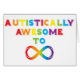 デザインは自閉症意識への愛で作られる。虹の文字の型枠は、無限大のシンボル素晴らしを持つ'Autistic To Infinity'というフレーズを表現する。