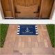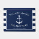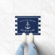ボートの所有者およびボートの航海のないかりそして名前をカスタムするを特色にする玄関マット。 側面で前部文字を補足する海軍および白のストライブ柄はあります。