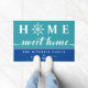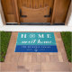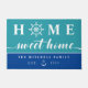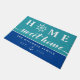 ターコイズのあなたの湖の家またはビーチの家のための航海のなドア・マットおよび白人のフォントで書かれる家の甘い家が付いている青。 最初の家のoは白いボートの車輪によって取り替えられます。 あなたの姓および確立される年と個人化して下さい。