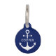 航海のいかりネイビー青と白パーソナライズされたのカスタムエレガントシンプルのペットモダンidラベル。完全にカスタマイズ可能な白い文字、ダークネイビーの青い背景。あなたはフロント側:名前とバック:名前、電話、住所、ペット保険ID番号、またはあなたのペットに関する重要な情報を持つ。犬素晴らしと猫のための。