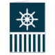 青航海の色の背景に帆走車と青と白のストライプデザイン装飾を持つ
