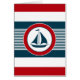 青航海の色、背景に丸い形の帆船の装飾を赤と白持つストライプのデザイン