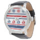 赤航海の、青、白の背景に帆船とコンパスの装飾が付いたストライプのデザイン