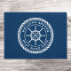 白、船の車輪エレガントとロープのエンブレムを備えたドアのマッカスタムトは、ダークブルーの背景の上に船の名前と歓迎の文字"を持つ。