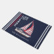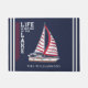 湖のユニーク家パーソナライズされたの名前と赤い帆と飾帆船とストライプことわざ"生活は湖で良い。 このテンプレートは、簡単に名前、ボート名、または別の文字を入力させる。中サイズのフォーマットについては、https://www.zazzle.com/nautical_navy_blue_white_red_sail_boat_lake_house_doormat-256640447603598195をご覧感謝してい下さい。
