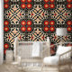 色と複雑な模様の魅惑的なデザインを特徴はっきりしたとする剥離とスティック壁紙。主な色は黒、赤、オレンジ、白。赤い花はオレンジ色の中心を持ち、暗い背景に鮮やかコントラストを作り出す。グラフィックスタイルはフォークアートに向かって傾き感じ、誰かが壁にもし直接手で色彩の鮮やか作った。形とオーガニック不完全な輪郭与えは、本物の自由な雰囲気だ。繰り返しパターンは、様式化されたフローラモチーフと涙形要素とを含む。花は繊細な黒い線で繋がり、複雑なネットワークを形成する。壁に適用すると、この壁紙は宇宙を変換する。目を引く、暖かく、ボヘミアンの魅力のtouchを加える。