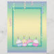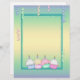 誕生日招待状、お祝い、会社の郵便配達などのレターヘッドデザインは緑、青、黄色の背景にカップケーキやストリーマーを備えている。テキストを追加し、紙の仕上げを選択する。このデザインで利用可能な他の製品。