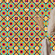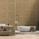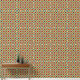 このピールとスティックの壁紙は、目を即座にキャッチする複雑な幾何学的なパターンを特徴とする。このデザインは、黒い線で縁取られたダイヤモンドの相互接続はっきりした形状から成る。各ダイヤモンドの中には、ピンクと白の色合いで着色された8つ星のモチーフが見つかる。これらの星は、表面を横切って魅惑的な視覚的リズムを作成する。背景は印象的なオレンジ色で、全体の構成に暖かさとエネルギーを加える。ダイヤモンドが接続するポイントで、小さな青い四角がデザインを区切り、ダイナミックなコントラストを作成する。カラーパレットにはオレンジ、イエロー、ブルー、ピンク、ブラック、ホワイトが含まれ、鮮やかで美的な色彩をモダン持つ。要するに、この壁紙は色はっきりした、複雑な形状、遊び心のtouchを組み合わせている。どんな部屋にも説明文を追加するのに最適!
