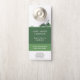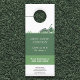 草や芝刈り機を含むイラストレーションと緑の色のドアハンガー。芝生とプロフェッショナルガーデナー気にや造園分野で働く人々に適している可能性がある:ランドスカー、芝生の刈り取りと維持、緑の宇宙の維持など。