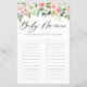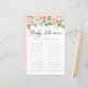 このおもしろいとフェスティバルのカスタマイズ可能な赤ちゃんシャワーゲームをイベントに追加。ピンクと白のバラの水彩フローラガーランド、ダリア、緑のアクセントのある牡丹を特徴としている。独自の文字を追加して、この水色の赤ちゃん名アルファベットゲームをパーソナライズ。このフローラの赤ちゃんシャワーのゲームは春の赤ちゃんシャワーに最適だ。