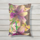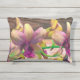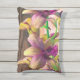 このアクセント枕の上でゾーピーのオリジナル写真の庭で蘭が再び咲いている。湾曲した緑の茎から現れる花は、花びらの先端に黄色に溶け込む紫色の中心を持つ。自然な木の背景は、彫刻の形状と色を設定する。