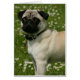 花で遊ぶパグ