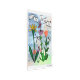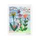 この絵をタブレットに描いた。花、ラディバグ、感動的引用文、トンボや紫、黄、珊瑚の楽譜。