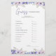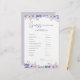 「花を推測する価格ブライダルシャワーゲームカード」は、ブライダルシャワーのための楽しくクリエイティブ活動である。このゲームは、ゲストが夢のドレスをスケッチする美しインスパイアい紫の花のデザイン結婚を特徴とする。その魅力的フローラテーマで、このゲームはお祝いにエレガンスのtouchを追加する。このおもしろいと魅力的な芸術的ブライダルシャワーゲームで彼らの想像力としゃれている想像力を披露しよう!