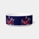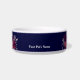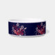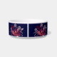 このデザインは多くの違う花、葉つる植物の入れ墨だ。花は蝶が少し飛んでいる見えのまわりにる。入れ墨の色は赤で桃の香りが漂う。ペットボウルは4つの花を持ち、両側に2つ。この料理の前にペットの名前を付けてもいいよ。ダークブルーのバックラウンドを使用。