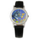ルイ・ワーインの絵画動物の猫をモチーフにした時計(1860年~1939年)黄金の目をした白黒の猫は黄色い花を匂わせる。紫色の背景には青い花が咲いている。猫好きや英語芸術に対する素晴らしい贈り物。