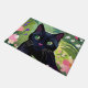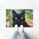 花の畑に座る黒猫 ドアマット