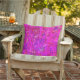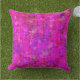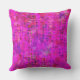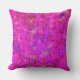 ピンク、マゼンタ、明るい赤紫色、紫、紫、赤の鮮やかな色合いがこの装飾用クッションの情熱的な色合いを表している。