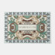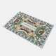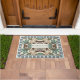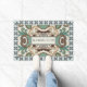 グリーンエレガント、クリーム、タン、ブルーの繁栄した幾何学的な形状の美しいパターンの上にあなたの名札のオーバーレイを特徴とするdoormat。古代モザイクのタイルを連想させる目を引くキャラクターの花々の入り口のdoormat。