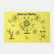 柔らかい黄色図解入りの、写真付きのの背景に3つの美しい花。さらに小さなライトブルーの蝶。カスタマイズする独自の単語を追加する。