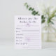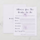 この素敵な紫のボヘミアンフラワーの「花嫁へのアドバイス」カードで、あなたの祝賀会に意味深くて記憶に残るタッチを加えましょう。ソフトな植物のアクセントとモダンなタイポグラフィーでデザインされたこのカードは、ゲストたちに花嫁への心からのアドバイスや願い、結婚のヒントを共有するよう促します。 このエレガントなカードは、結婚式の前祝いの会に最適で、家族や友人からの愛情、知恵、思いやりのあるメッセージが詰まった、 花嫁が長期にわたって大切にできる記念品になります。