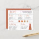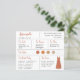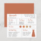 テラコッタ/ニュートラル色のウェディングパレットに合わせた花嫁の介添え人情報カード。ウェディングの日程と場所、ウェディングカラー、結婚式のメンバー、介添え人のドレス、介添え人への提案メッセージが含まれます。左上隅には、テラコッタブラウンの手書きで介添え人の名前が書かれています。右下隅には、テラコッタ色のドレスがあります。中央には、結婚式のカラーが円形で表示されています。ウェディングドレスの色を含め、カラーは変更可能です。