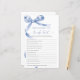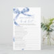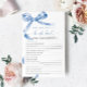ブルーボウ「誰が花嫁を知っ最高のている」ゲーム – 繊細なブルーボウデザインを搭載したゲー魅力的ムカードを使用して、ブライダルシャワーにいくつかのおもしろいを追加する。この「花嫁を知る最高の者」のゲームは、ゲストとスタイルの花嫁の魅力に最適だ。脚本エレガントとアクセントフェミニンで、このゲームカードはブライダルシャワーのテーマに美しく加えられ、花嫁や愛する人々にとって思い出に残る記念の品となる。***お店の検索でH124を入力して一致するすべての項目を検索***または当社のブルーボウコレクションを参照してください。***この高品質デザインはカスタマイズお客様の色とスタイルとテーマに合わせ結婚る簡単である。さらにカスタマイズする場合はクリック、「デザインツールを使用して編集」リンクをクリックし、デザインツールを使用してこのテンプレートを変更する。要もし件救済又は一致する品連絡目を下さい