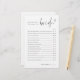この「花嫁を知るゲーム」でアイスブレイクをしましょう。ゲストに花嫁についての質問に答えてもらい、正解の数を集計します。必要に応じて、デザインツールを使用して質問をカスタマイズしたり、ブライダルシャワーのテーマに合わせて色を変更することができます。