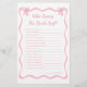 あなたのブライダルシャワーを忘れることができない私たちのパーソナライズされたピンクボウブライダルシャワーゲーム:誰が花嫁を知っ最高のている。弓をテーマにしたブライダルシャワーアイディアと結び目ブライダルシャワーテーマに最適な、このゲームはあなたのコケットブライダルシャワーテーマにおもしろいtouchを追加する。ピンクのブライダルシャワーアイディアに最適な、この弓パーティーゲームはピンクのブライダルシャワーや弓ブライダルシャワーテーマにシームレスに適合し、結び目ブライダルシャワーアイディアとクラシックブライダルシャワーゲームを結ぶために必要な持ち合わせをする。