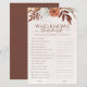 このカスタマイズ可能なゲームであなたのブライダルシャワーに秋の魅力のtouchを追加。暖かい秋トーンで美しいフローラデザインを搭載し、素朴またはボヘミアンをテーマにしたお祝いに最適。おもしろいと魅力的な質問で花嫁の知識をテストしながら、フェスティバルの雰囲気を楽しむ。おカスタマイズ嫁さんの個性に合った質問と、本当に思い出に残るユニーク体験を作る。
