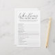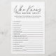 花嫁モダンのゲームを知っているスクリプエレガントトで白黒のブライダルシャワーをスパイス最高のアップ!この洗練されたブライダルシャワーゲームは、クリーンでタイムレスな外観のためのミニマルなスクリプトフォントを備えている。彼女を知っているお気に入りのことを証明しようとするあなたの花嫁の思い出を笑い最高のて結び付け。会話を引き起こす思慮深い質問と、このゲームは心からのお祝いを作る。親しい友達との上品で親密なブライダルシャワーに最適なスクリプトゲエレガントームは、区別のtouchを追加する。お客様を一緒に迎え入れながら花嫁を祝う思い出に残る方法だ。このゲームでブライダルシャワーを1つ覚えユニークなさい!