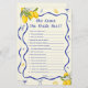 花嫁のゲームを知っているこのブルーレモパーソナライズされたンブライダルシャワーでメイン絞りブライダルシャワーテーマの余分な最高のおもしろいを作る!フレッシュなレモンデザインを搭載し、メイン絞りブライダルシャワーレモンお祝いに最適。レモン素晴らしブライダルシャワーテーマに加えて、それはあなたのイベントに笑いと興奮を追加。レモンをテーマにしたブライダルシャワーアイディアに最適。このゲームはレモンをテーマにしたブライダルシャワーアイディアイタリアンや夏のブライダルシャワーアイディアにも最適!
