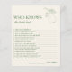 花嫁祝は完璧な梨のブライダルシャワー誰が花嫁のゲームのカードを知っ最高のて、手で描いた梨、柔らかい緑、スクリプトのタイポグラフィを備えた新婦のエレガント。ゲストを笑わせたり思い出を共有したりするためのおもしろいの方法は、この梨のテーマブライダルシャワーゲームは誰が花嫁を知っているか見るために友人や家族に課さ最高のれる。素朴な家、農家、庭のイベントに最適なインスパイア、このブライダルシャワーアクティビティカードペアはピッタリの洋ナシ招待状、シンボルや象徴、装飾と美しく。