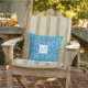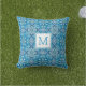 花柄かわいらし青の幾何学的タイルモノグラム アウトドアクッション