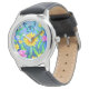 花畑に咲く美しい青い蝶 腕時計