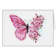 白い背景にピンクのさくらんぼが咲くピンクの日本の蝶の花のアレンジメント。