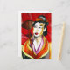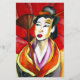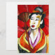オリジナルアートデザインの水彩画絵画芸者の赤い傘と黄色の背景を持つ日本の着物の芸者。明るくカラフルでインスパイア、東洋やアジアの芸術によ来り、京都地方の美しい女性である。