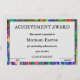 芸術的功労祝賞この功労素晴らし賞で芸術的す!魅力的な鮮やかカラフル詳細とのデザイン任意の受信者を尊重するカスタマイズ可能な文字アート、献身、懸命作品を認識するのに最適な永続的なプライドのための耐久性と仕上げ忘れられない成果を上げエレガントる!