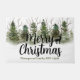 黒いスクリプト文字と緑の松の木の家名の少し可愛いトナカイのdoormat。このデザインは雪の白で、本当に冬に見える。水色の松の木は、デザインを美しく自然に見せる。スクリプトの美しい黒い文字は、あなたが望むものに変更することができ、また、軽い茶色の素敵な文字の家族名。聖降誕祭お目出度う!