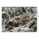 若いユキヒョウは美しい雪で覆われた低木の中でからかいま見ます。