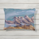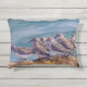 この屋外/屋内アクセントピロー上のゾーSPEAKによるオリジナル写真の海岸の鳥は、赤いターンストーンと呼ばれる。若い茶色と白の鳥たちは、冬の色を帯びており、入り江の渦巻く青い海の水を見下ろす桟橋の上に立っている。