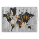 金色の文字フレーズとグレーの板の背景の上の世界の黒い地図を特徴とするかわいいデザイン。アーティスト: Studio W