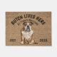 英語ブルドッグパーソナライズされたの愛犬の歓迎doormat.この歓迎マットはパーソナライズされた、あなたの犬の名前と一緒に行うことができ、スローガンも変更することができ、または自分の犬の写真を使用することができる(それが透明であることを確認する)。文字読:ブッチはここに住んでいる....All treets welcomeデザインを編集して、フォント、色、背景色を変更する。あなたの犬の画像を置き換える場合は、透明な画像を使用する。引っ越し祝いパーティーのパーティー、休日、愛犬家、およびほとんどの大事な行事のための素晴らしい贈り物を作る。